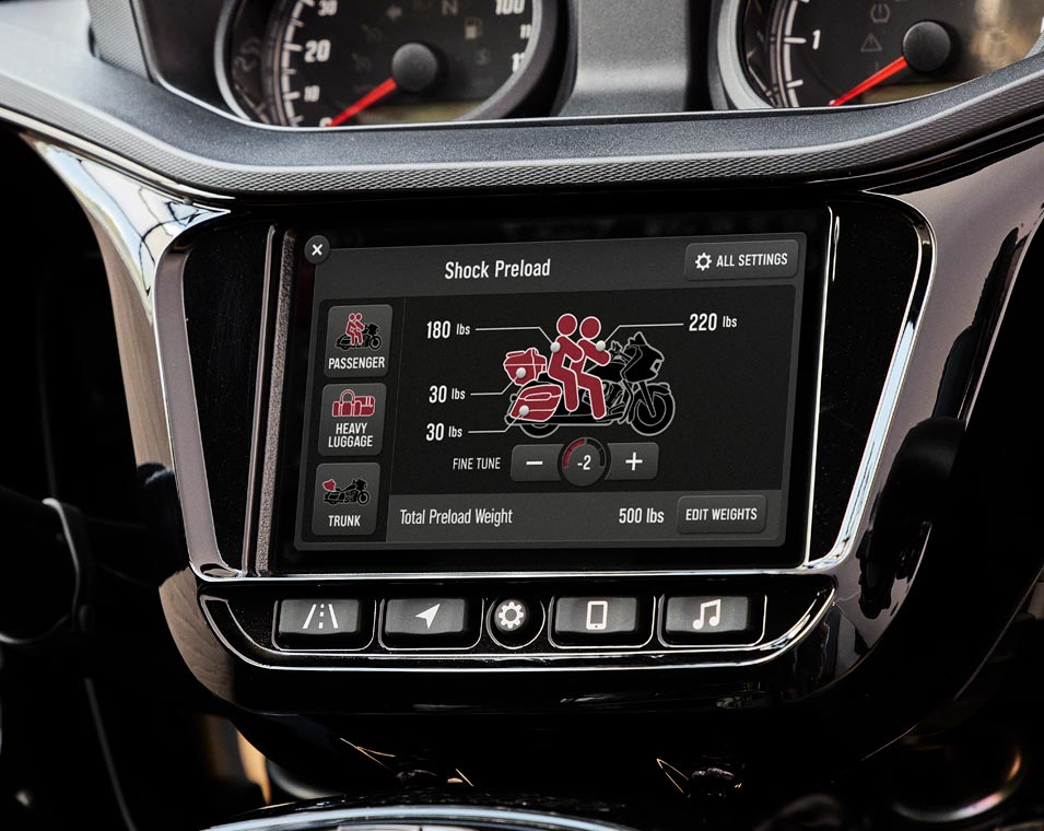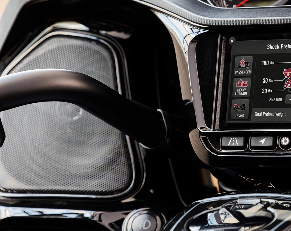 • Info entretenimientoPantalla táctil de 7 pulgadas, gestionada por RIDE COMMAND, con Apple CarPlay® integrado, navegación giro a giro y funciones conectadas al RIDE COMMAND+