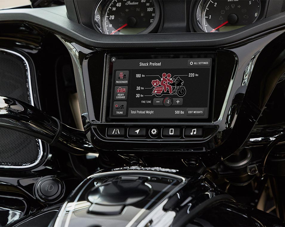 Control de crucero, audio integrado, encendido sin llave y aún más tecnología de ayuda a la conducción se combinan con una pantalla táctil de 7 pulgadas. La pantalla táctil está gestionada por RIDE COMMAND e incorpora Apple CarPlay® integrado y funciones conectadas al RIDE COMMAND+.