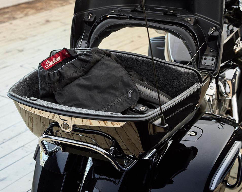 Más de 132 litros de espacio de almacenamiento resistente a la intemperie y con cierre remoto para guardar todo el equipo que tengas. O quítale el maletero Quick Realease de desmontaje rápido para reducir peso y conseguir un look totalmente nuevo. Disfruta de aún más espacio de almacenaje con los compartimentos adicionales integrados impecablemente en los carenados inferiores.