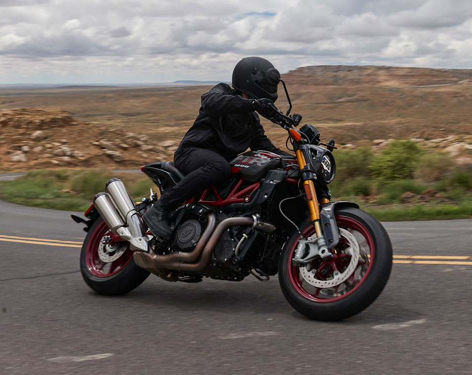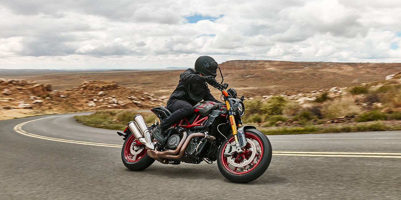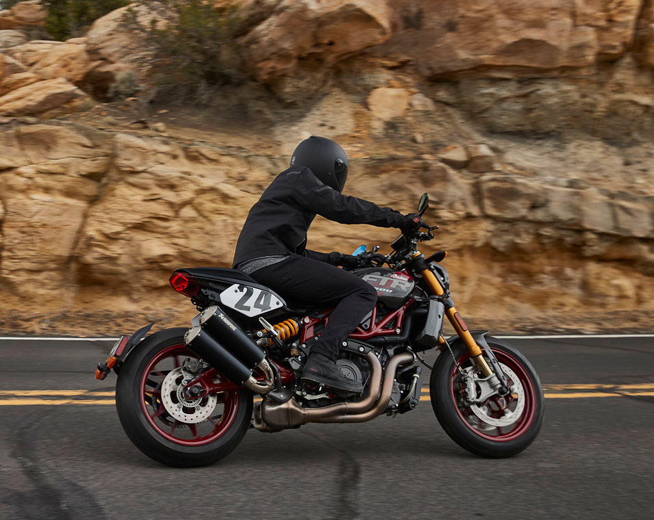 El carácter de un V-twin americano, refrigerado por agua y de altas revoluciones es único y es el corazón de lo que hace a la FTR tan extraordinaria. 120Nm de par motor proporcionan una curva de par tan llena como progresiva y sube sin esfuerzo hasta su línea roja a 9000rpm.