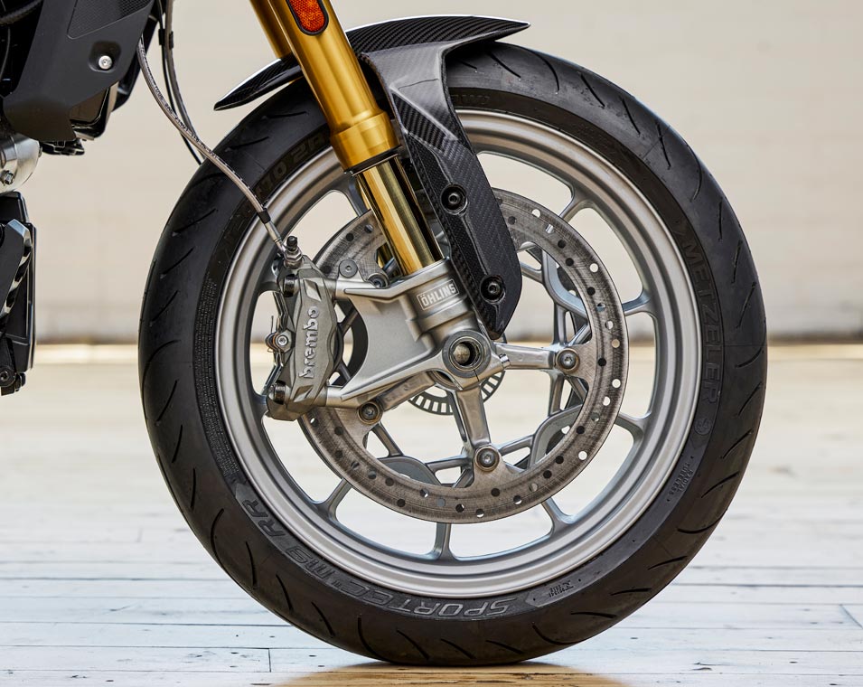 La suspensión delantera y trasera Öhlins® totalmente ajustable te permite ajustar exactamente el tacto en marcha que tú quieres, manteniéndote estable en las calles de la ciudad o en carreteras secundarias sin sacrificar una manejabilidad telepáticamente ligera.