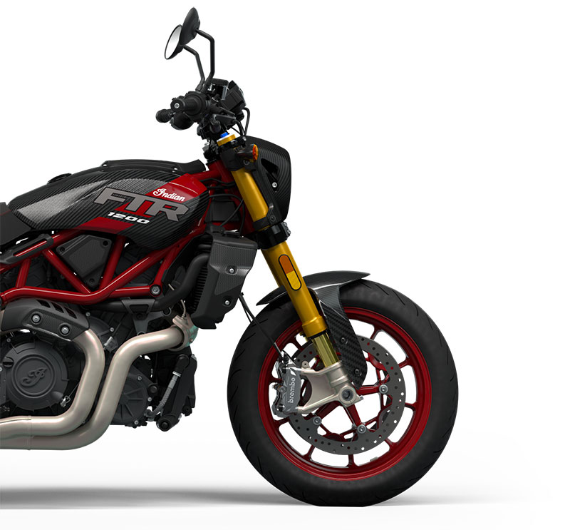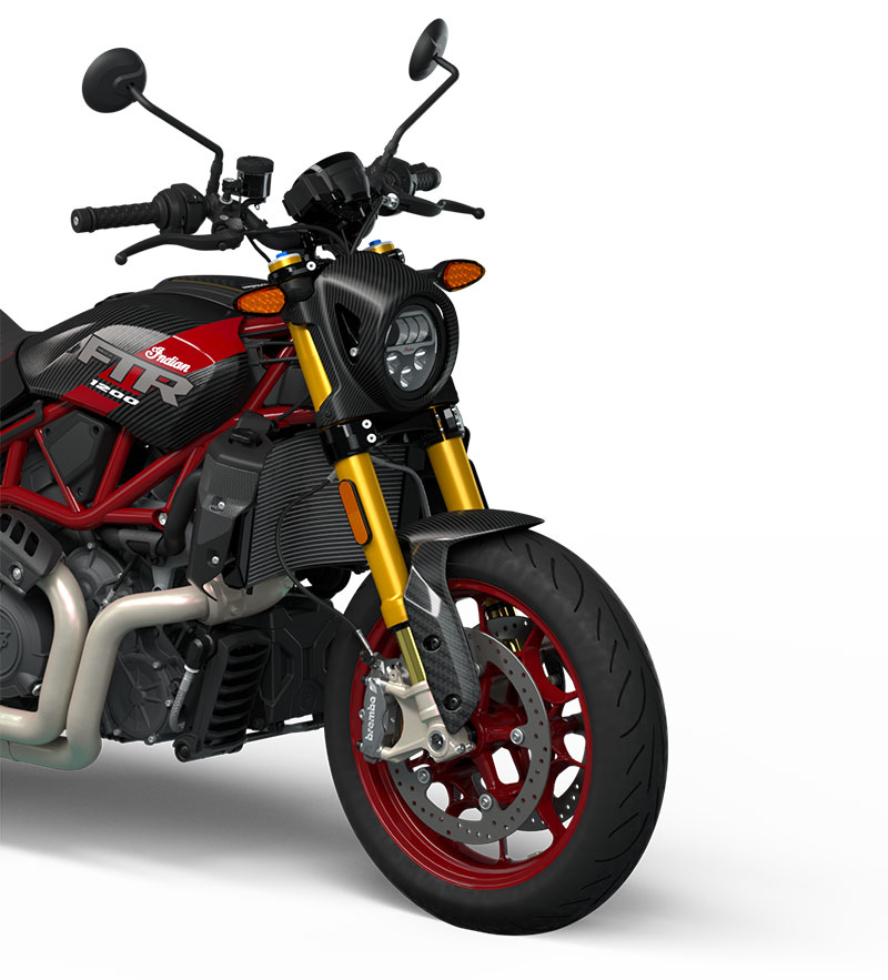 Escultural y musculosa y sofisticada, la FTR Carbon es la esencia de lo que debería ser una motocicleta. Totalmente inspirada por nuestras raíces de Flack Track, las mismas cosas que la hacen elegante también la hacen increíblemente funcional. No solo es bonita cuando está parada.